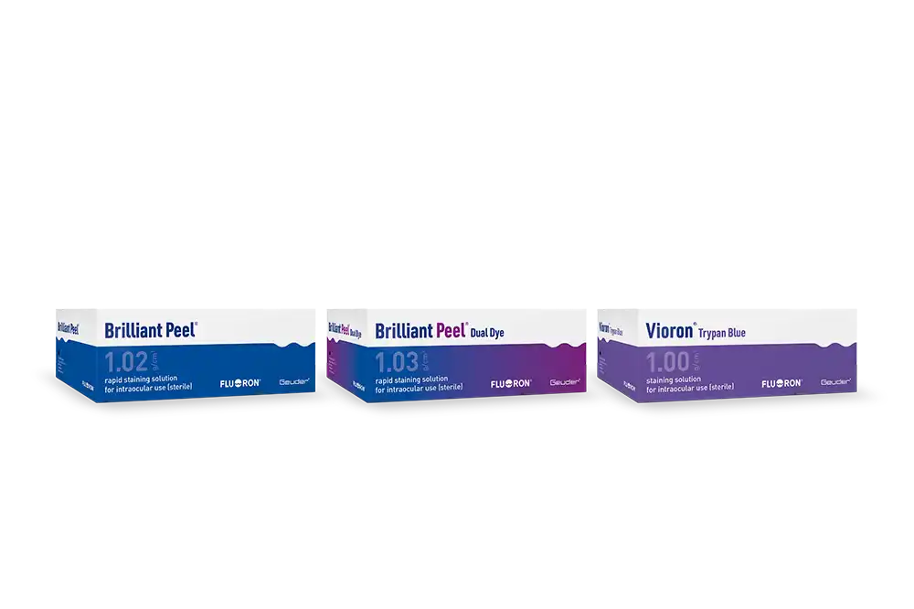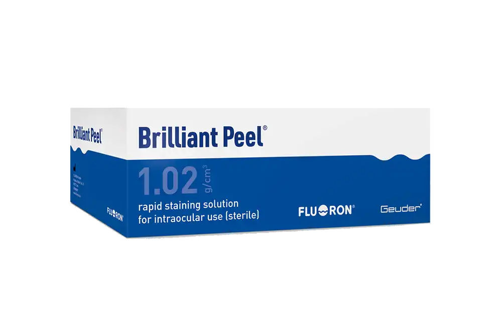 Dankzij de dichtheid van 1,02 g/cm³ zinkt Brilliant Peel® snel naar de fundus van het oog zonder diffuse verspreiding in de gehele oogbol. Hierdoor wordt de chirurgisch veeleisende verwijdering van het ILM eenvoudiger en veiliger.