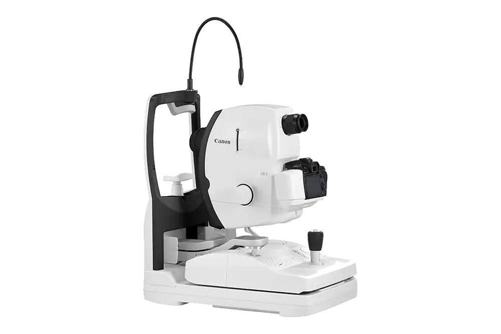 De CX-1 is een compact apparaat dat maximale interactie met de patiënt mogelijk maakt. Door de korte reikafstand kan het ooglid van de patiënt eenvoudig geopend worden. Alle filters zijn gemotoriseerd, net als de kinsteun, die eenvoudig te bedienen is met één druk op de knop.