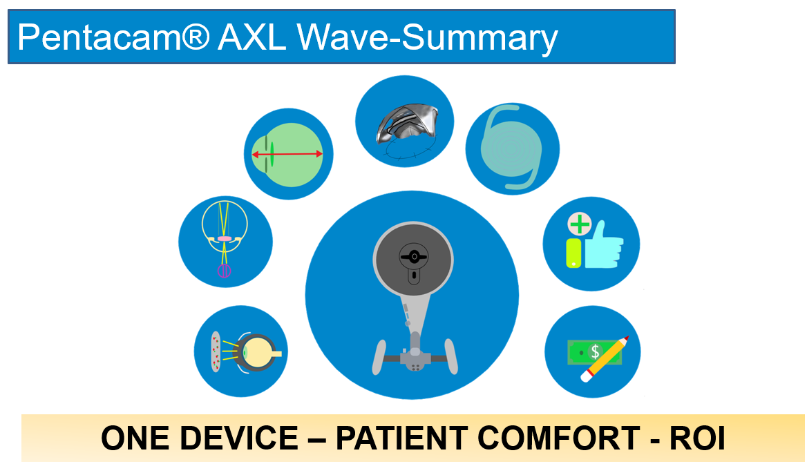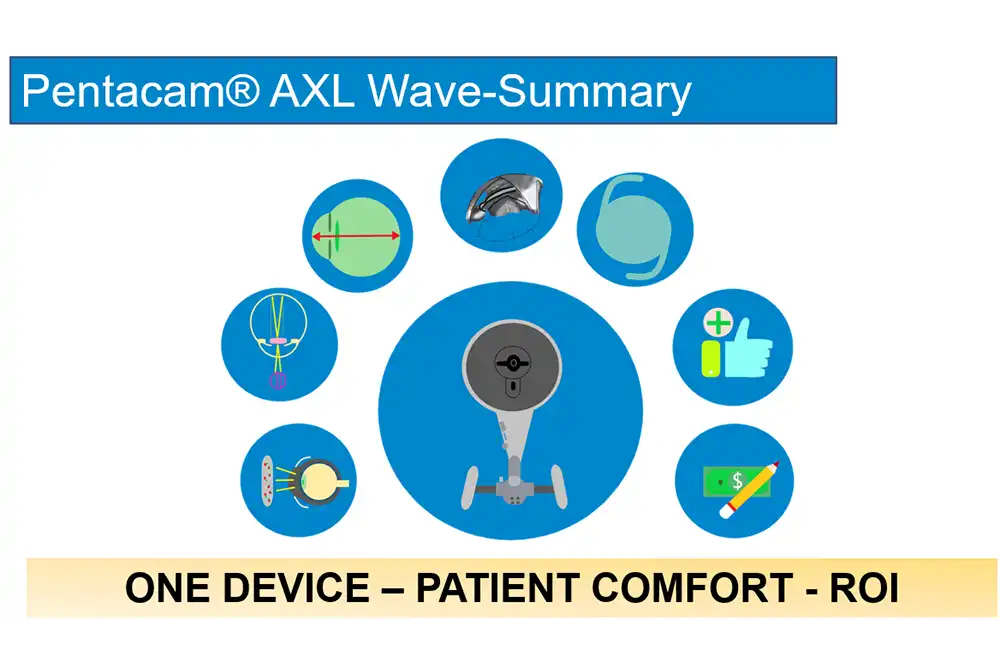 De OCULUS Pentacam® AXL Wave analyseert de kwaliteit van het zicht door een volledige beoordeling uit te voeren van zowel de voorste oogkamer als de lens.
