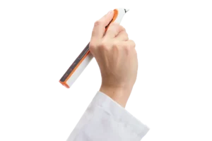 Dankzij het compacte en ergonomische ontwerp is POCKET III® de lichtste draagbare pachymeter op de markt, met een gewicht van slechts 60 gram. Metingen uitvoeren is eenvoudiger en daardoor comfortabeler voor zowel de arts als de patiënt. - Veilig en geschikt voor desinfectiebehoeften