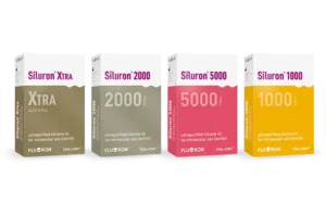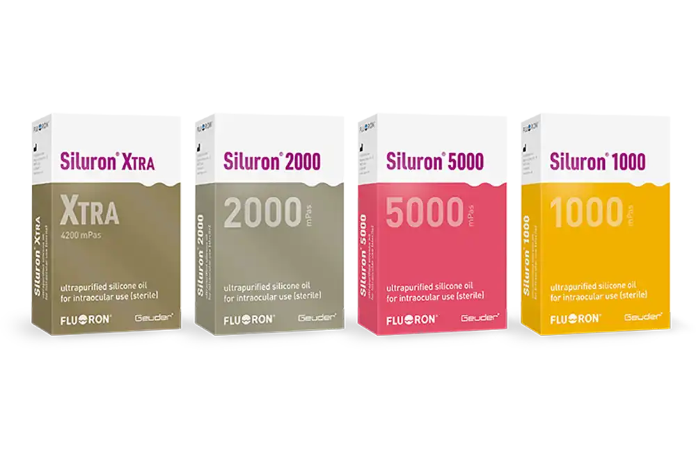 Vanwege hun speciale moleculaire structuur hebben Siluron® Xtra en Siluron® 2000, vergeleken met standaard siliconenoliën, in vitro een hoge emulsificatieweerstand. Beide innovatieve siliconenoliën bestaan uit een mengsel van ultralange moleculaire ketens met een viscositeit in het bereik van 2.500.000 mPas en korte moleculaire ketens met een viscositeit in het bereik van 1.000 mPas.